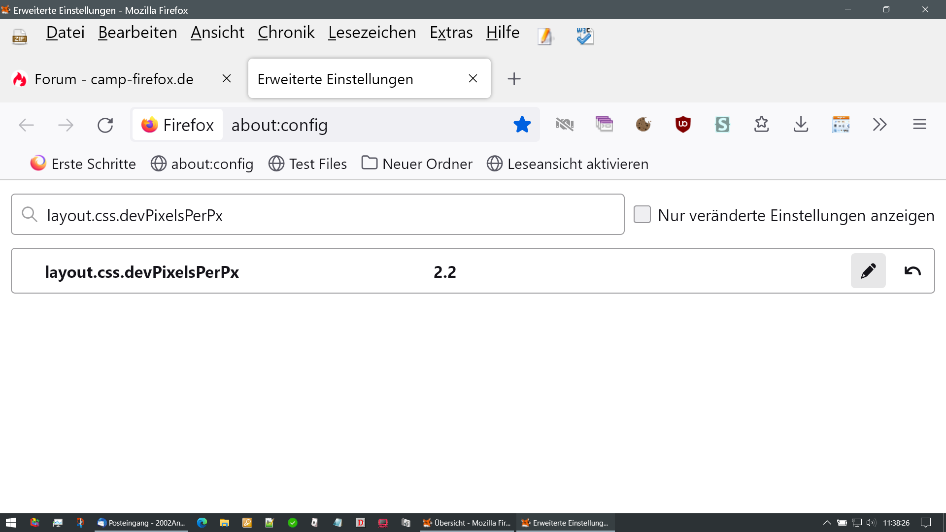 Dazu musst du about:config aufrufen und den Warnhinweis bestätigen.