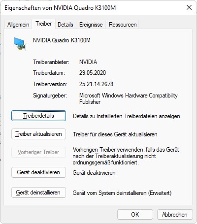 • Vielleicht liegt es einfach daran, dass Nvidia für Windows 11 keine Treiber für die K3100M anbietet, nur Win10 x64