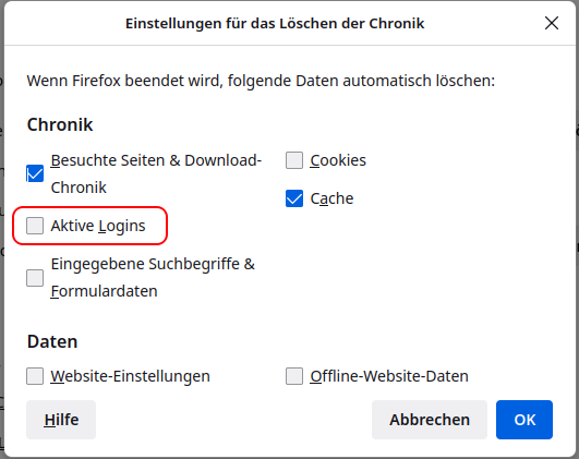 Bei FF muss ich mich aber jedesmal neu einloggen.