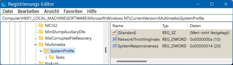 Stimmt nicht ganz - die FFFFFFFF Einstellung bringt bei mir sogar lahmere Ergebnisse nach dem Systemneustart. Ist vielleicht ein Zufall, aber ich hab's wieder auf Standard 10 gestellt.