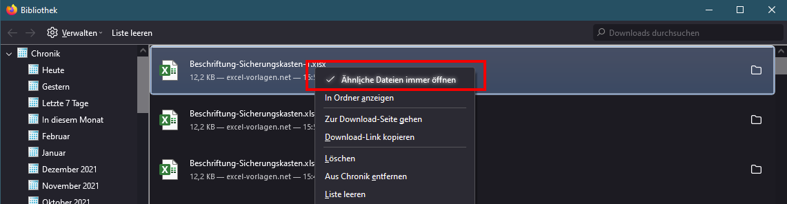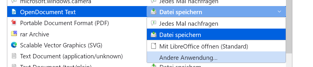 habe ich eine Tabelle für die Anwendungen mit Dateityp und Aktion.