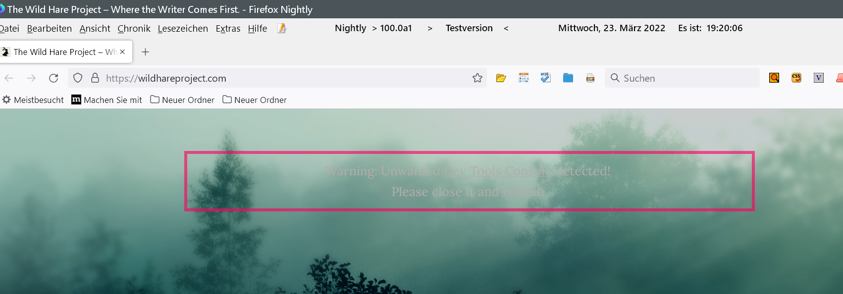 seit dem Update auf 98.0.2 (Windows 10) kann ich bestimmte Websites zwar öffnen, bekomme aber immer die gleiche Fehlermeldung: "Unwanted Dev Tools Consle detected! please close and refresh!" Ein Screenshot davon ist angehängt.