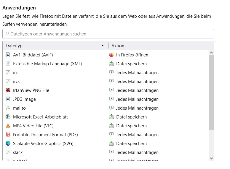 Hallo! Seit kurzem habe ich Probleme mit Downloads. Beim Einsehen von Bilddateien, spezifisch .jpg und .png, auf bspw. Absence werden die Downloads der Bilder automatisch gestartet obwohl in den Einstellungen "Jedes mal nachfragen" ausgewählt wurde. Auf anderen Rechnern war das Problem mit gleicher Firefox Version auch nicht replizierbar und die Downloads haben wie gewohnt nach Abfrage funktioniert.