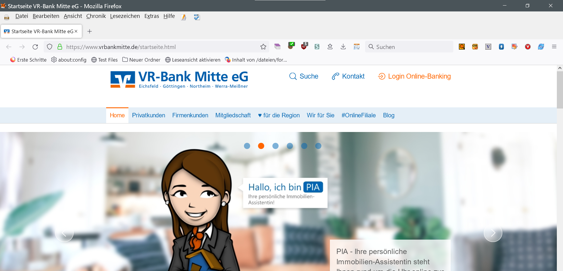 Die betroffenen Webseite unter (Windows 10) ist : https://www.vrbankmitte.de/startseite.html
