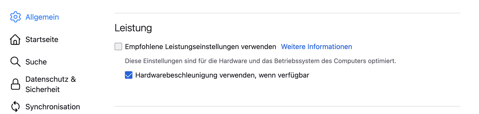Die about:config Einstellungen browser.tabs.remote.autostart auf false und dom.ipc.processCount auf 0 oder 1 bewirken im Übrigen auch nichts.