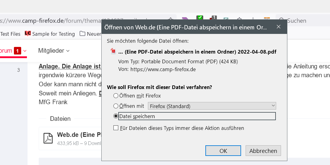 Hallo, ich versuche einigen Leuten zu erklären, wie man eine Mail-Anlage schnell auf der PC-Festplatte speichert. Es geht hier immer nur um eine Anlage. Die Anlage ist eine PDF-Datei. Ich habe mal eine Anleitung als Anlage angehängt. Die Anleitung erscheint mir zu lang. Gibt es denn nicht irgendwie kürzere Wege? Bei Thunderbird brauche ich z.B. nur einen Doppelklick auf die Anlage zu machen und bin dann schon fast fertig.