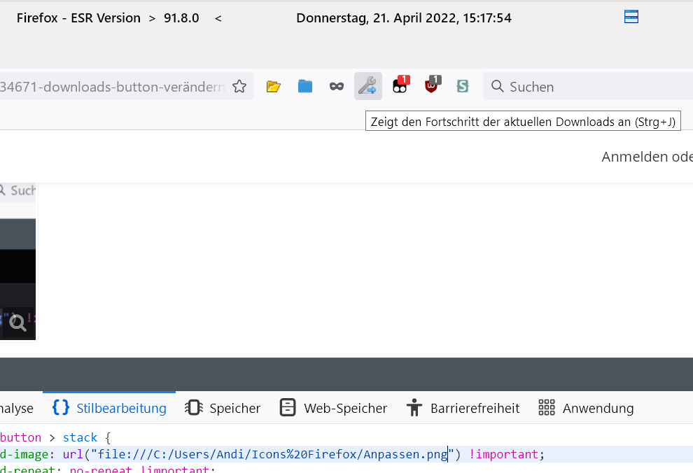 Was bei anderen Buttons zu klappen scheint, scheint beim Downloads-Button aber nicht zu klappen.