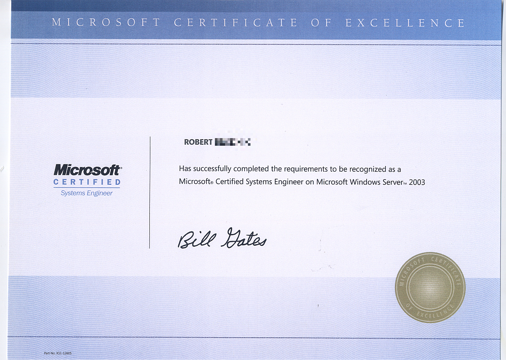 Ich habe in den 2000ern mal einen Kurs belegt an dessen Ende ein paar Prüfungen standen, die mich zum sog. MCSE machten.