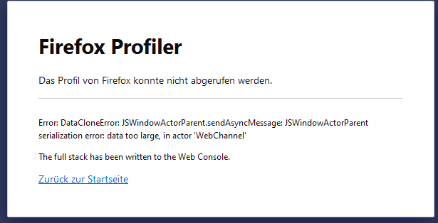 Interessant ist aber, dass bei dem Ladeproblem bei einer Seite in der Konsole (F12) absolut nichts angezeigt wird. Habe probiert eine Laufzeitanalyse zumachen aber irgendwie bekomme ich das nicht. Kommt immer eine Fehlermeldung.
