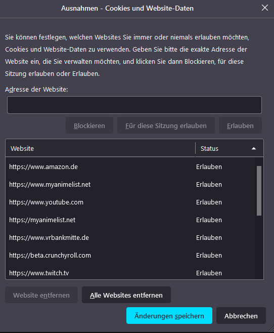 Abermals enttäuscht habe ich die Funktion wieder deaktiviert. Nur habe ich seitdem das Problem, dass wenn ich mein Browser schließe ALLE Daten gelöscht werden.