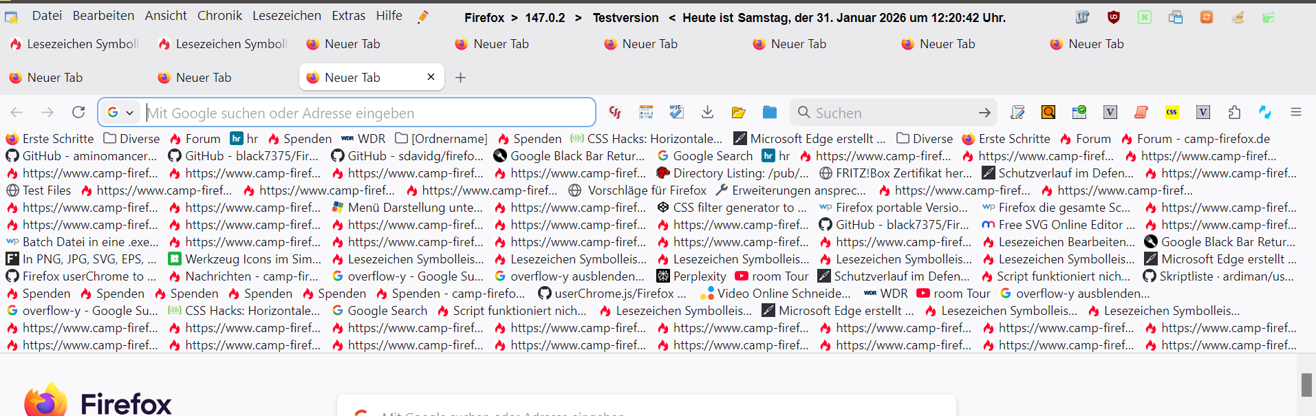 vielleicht kannst du mir weiterhelfen, aktuell sieht meine Lesezeichen Symbolleiste so aus, siehe Anhang.