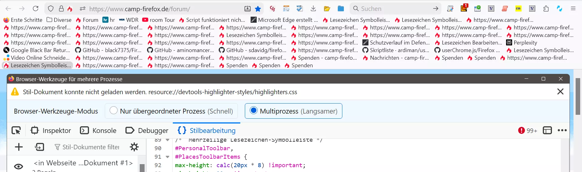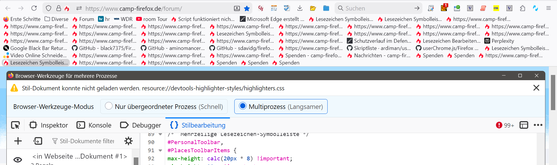 vielleicht kannst du mir weiterhelfen, aktuell sieht meine Lesezeichen Symbolleiste so aus, siehe Anhang.