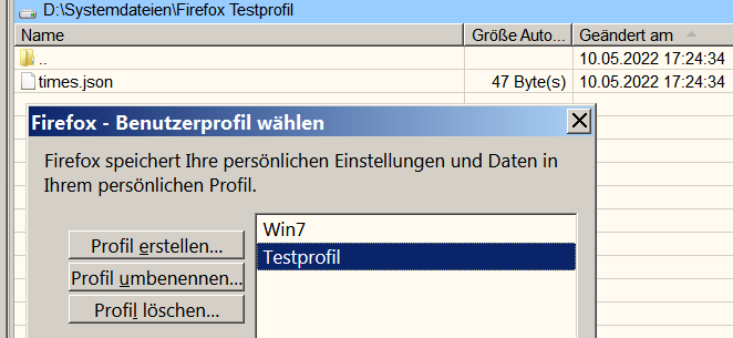 Hier also ein jungfräulicher Ordner in dem die Dateien vom Testprofil zu liegen bekommen.