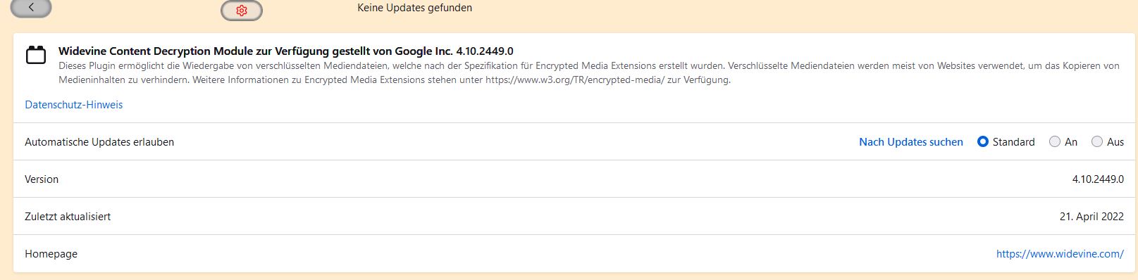 könnt ihr bitte mal bei den Plugins gucken ob ihr bei dem Widevine widewinve content Plugin die Version 4.10.2449.0 habt und wann sich das installiert hat?