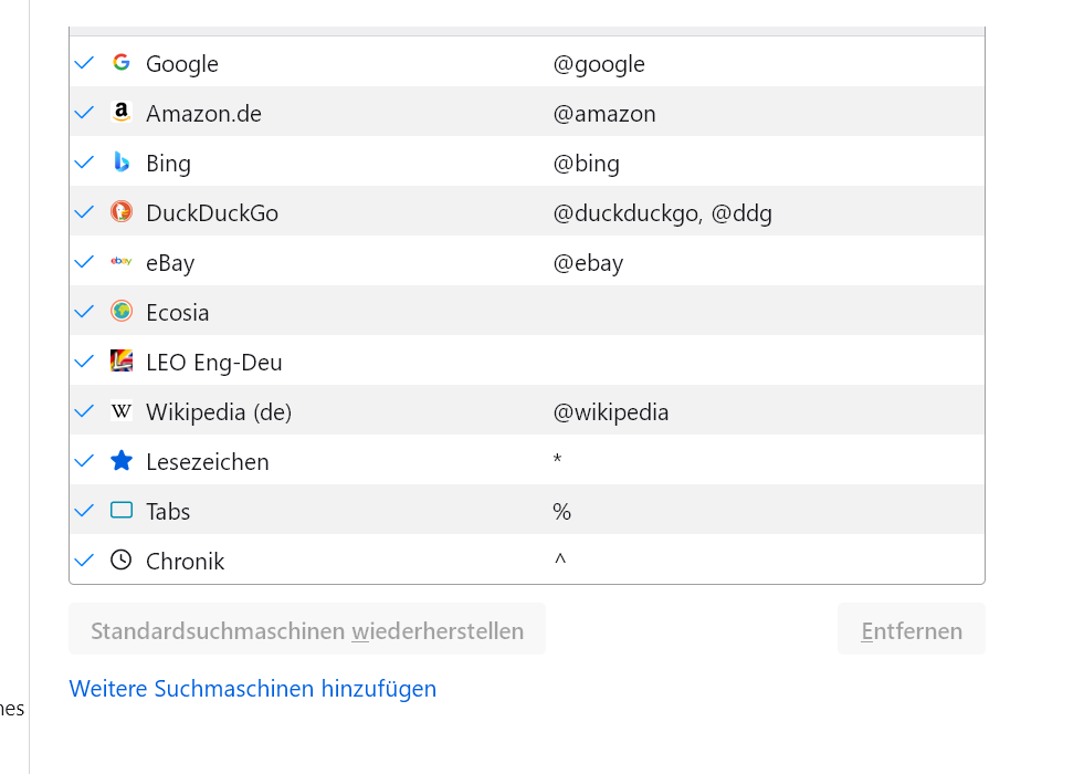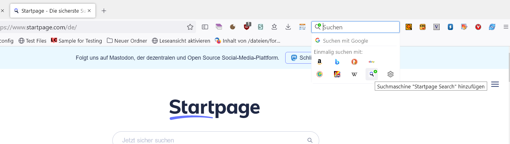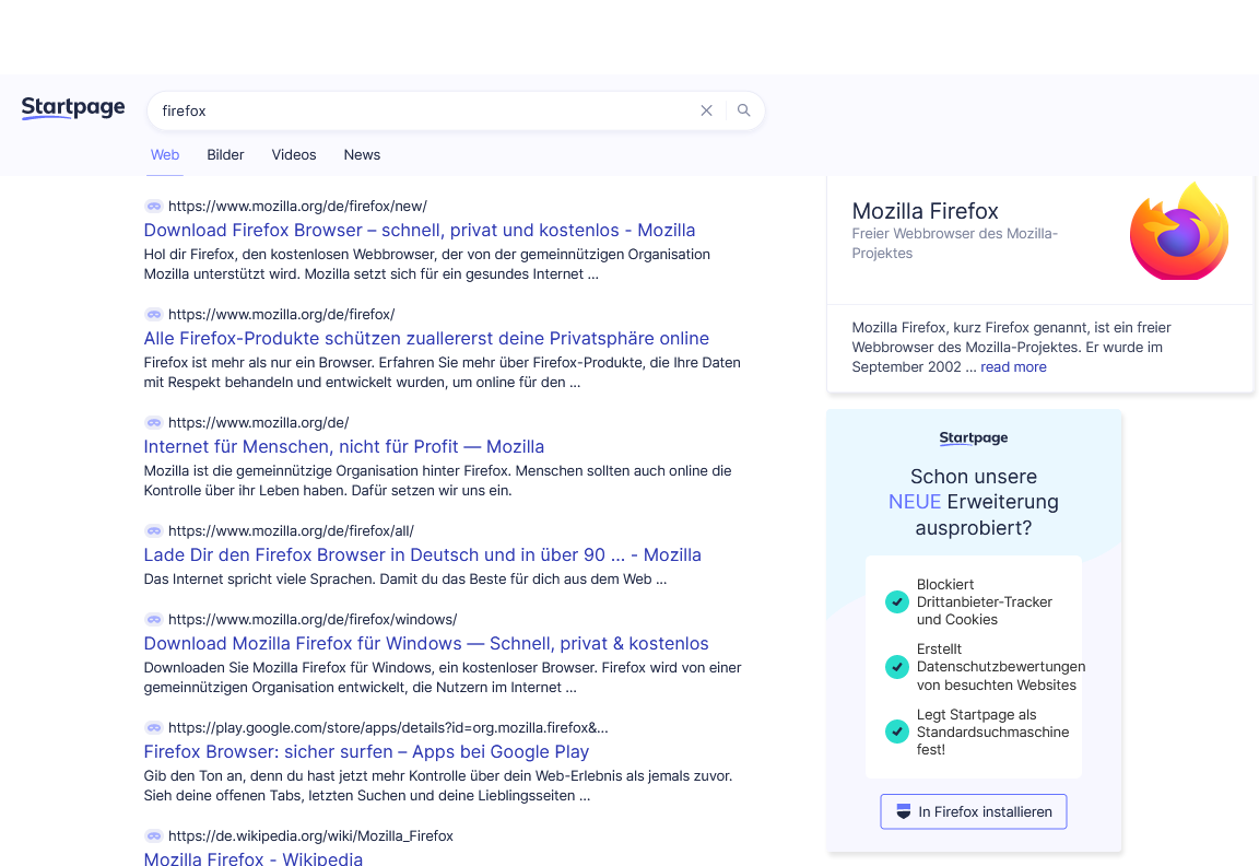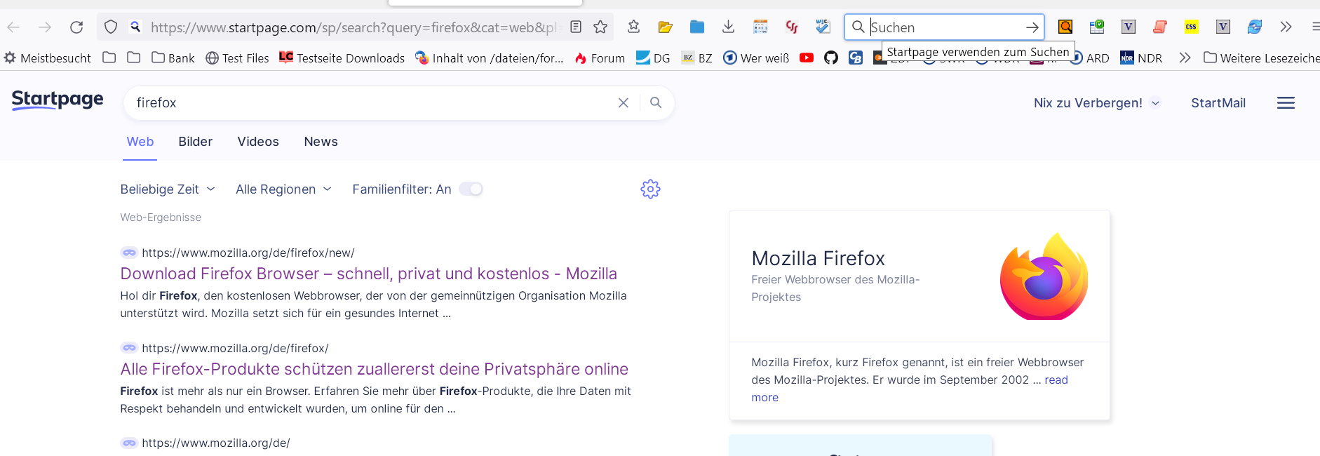 Startpage als Standardsuchmaschine zeigt keine Treffer