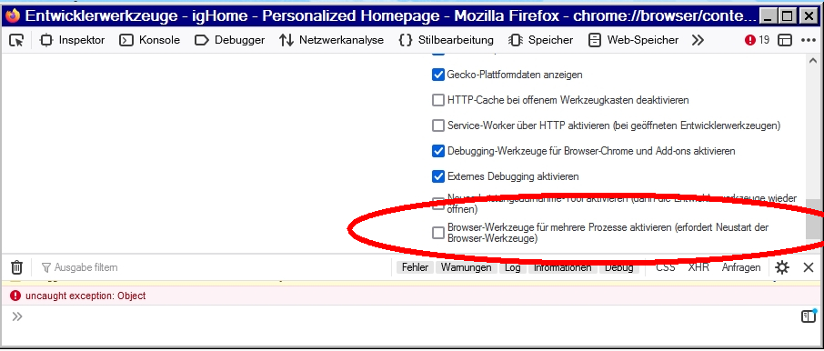 Seit kurzem (möglicherweise seit gestern) funktionieren bei mir die Browser-Werkzeuge nicht mehr (siehe Screenshot).
