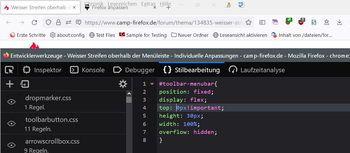 Seit heute ist im FF im Vollbild meine Menüleiste "abgeschnitten", der obere Teil der Schrift fehlt. Verkleinere ich das Fenster, ist die Schrift wieder vollständig lesbar.