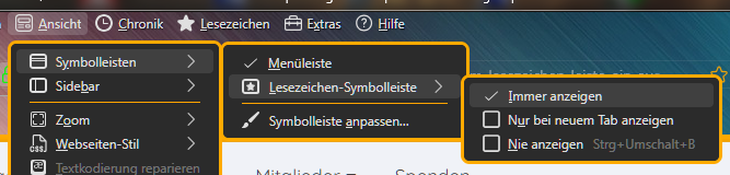 Schaltfläche um Lesezeichen Leiste ein/auszublenden ?