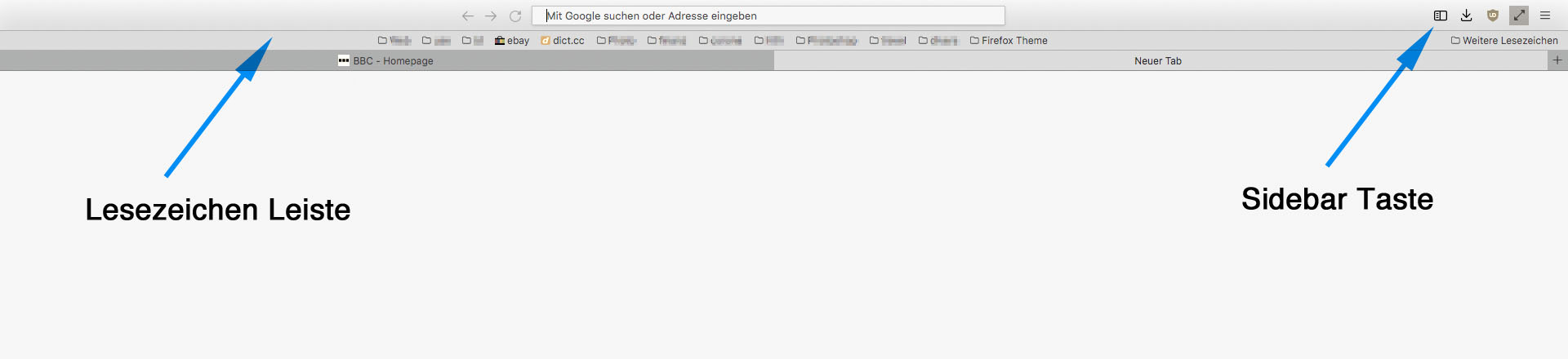 Z.B. gibt es eine optionale Schaltfläche in der Navbar, die die Sidebar Lesezeichenansicht öffnet ( s. Screenshot ) - nur hasse ich die Sidebar mit Leidenschaft ... ![]()