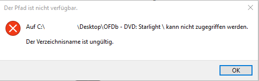 Versuche ich von der Website eine Verknüpfung zu erstellen, dann bekomme ich die folgende Fehlermeldung ... ![]()