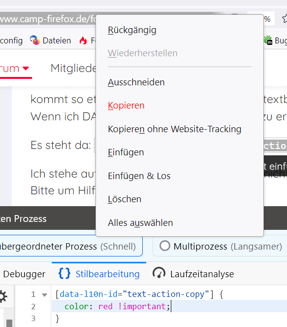 Es steht da: menuitem data-l10n-id="text-action-copy" cmd="cmd_copy" label="Kopieren" accesskey="K"