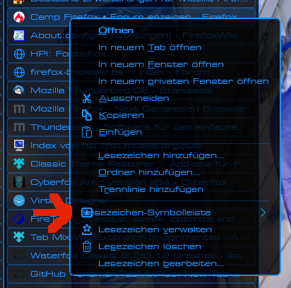 Nur ist mir jetzt aufgefallen, dass es mit dem Kontextmenü der Lesezeichen ind der Lesezeichen-Symbollesite bei mir noch ein Problem gibt.