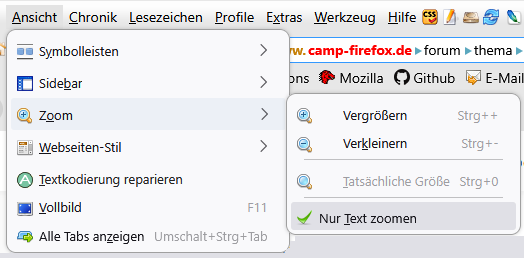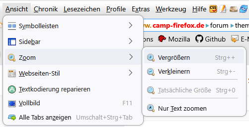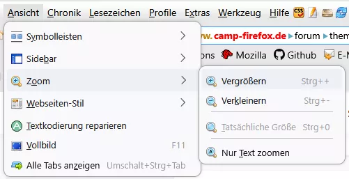 Und hier für das Menü "Ansicht"