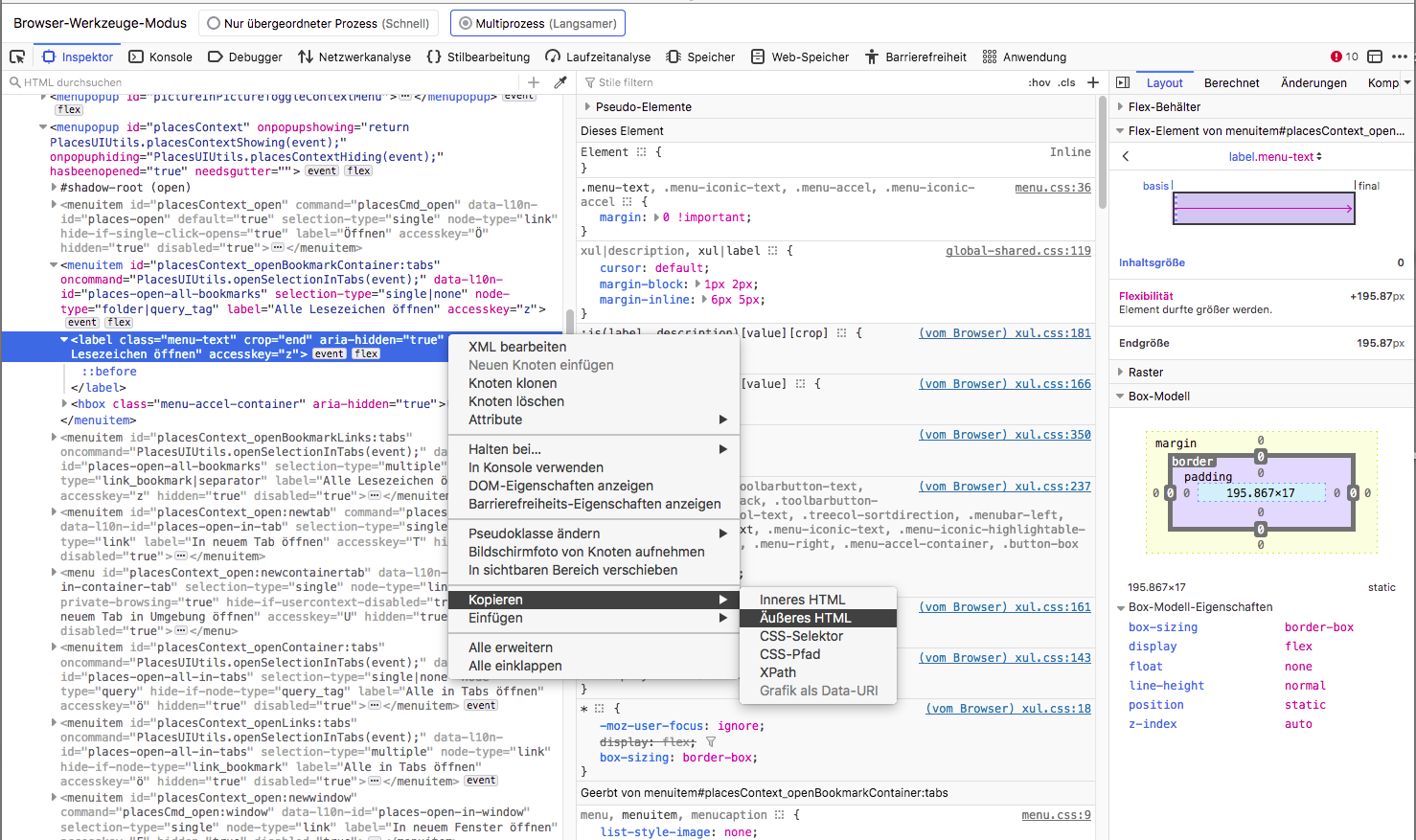 Der gesamte Inhalt vom übergeordneten Kontextmenü #placesContext; inneres HTML, mit einem Formatiertool etwas lesbarer gemacht (langer Text...):