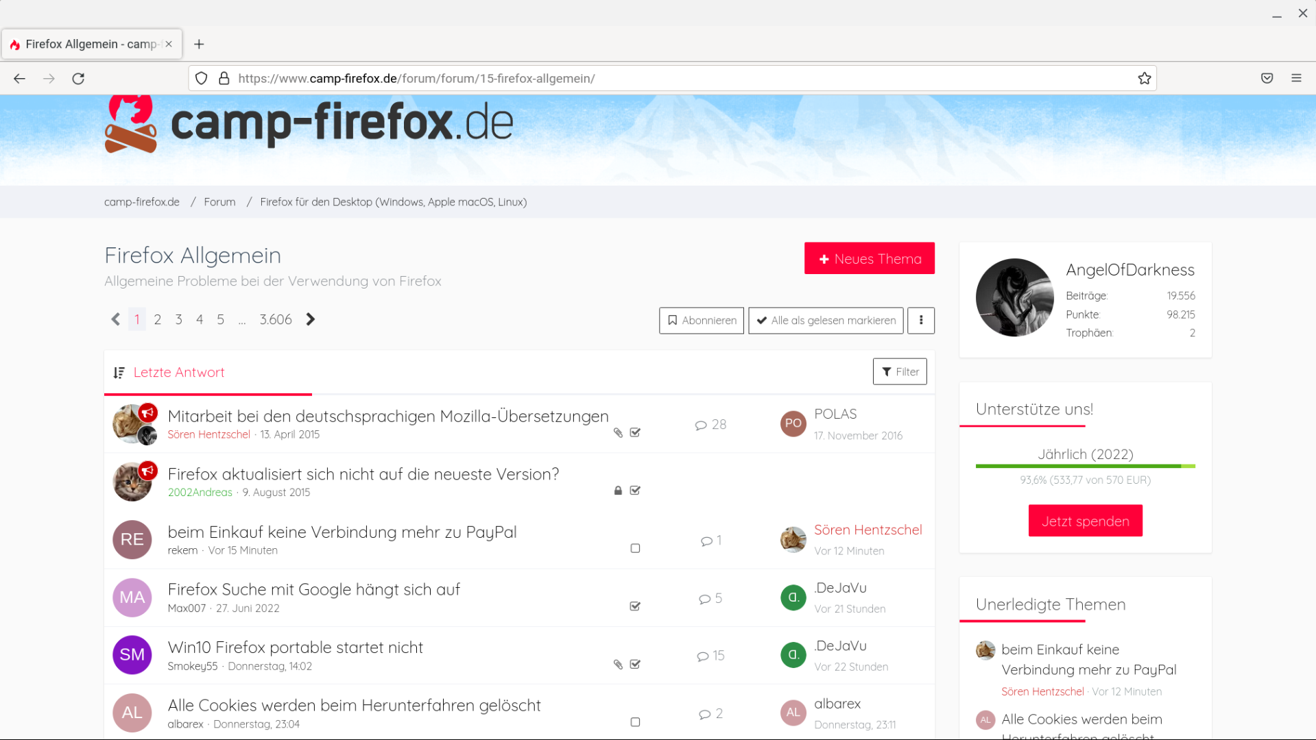 Auch werden mir in den jeweiligen Rubriken die Threads mit ungelesen Posts nicht mehr fett markiert.