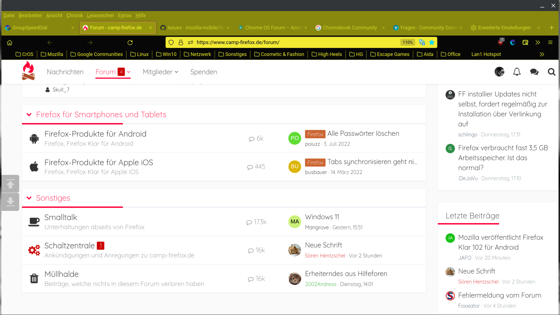 HP Chromebook 15a-nb0225ng, i3N-305, 8 GB LPDDR5-4800 MHz RAM (integriert), 256GB UFS, - chromeOS 143 (Stable Channel) - Linux Debian Bookworm: Firefox Nightly, Beta und Main Release (Mozilla PPA), Android 13: Firefox Nightly und Firefox (Main Release) - Thunderbird 140.5.0esr