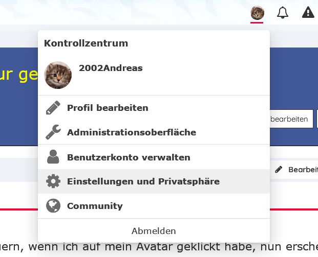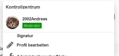 CSSdiv.userMenuContentDivider:nth-child(3)::after { content: "Signatur" !important; padding-left: 50px !important; font-weight: bold !important; font-size: 15.2px !important; }So müsste es doch auch möglich sein, das auch per Script zu machen, und den Eintrag dann klickbar mit der Url erstellen.