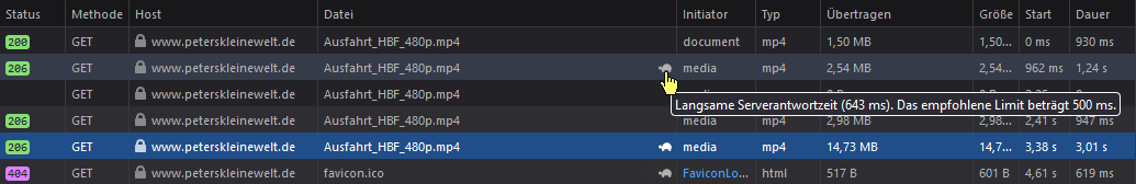 Und die entsprechende Anmerkung von Firefox zur Serverantwort: