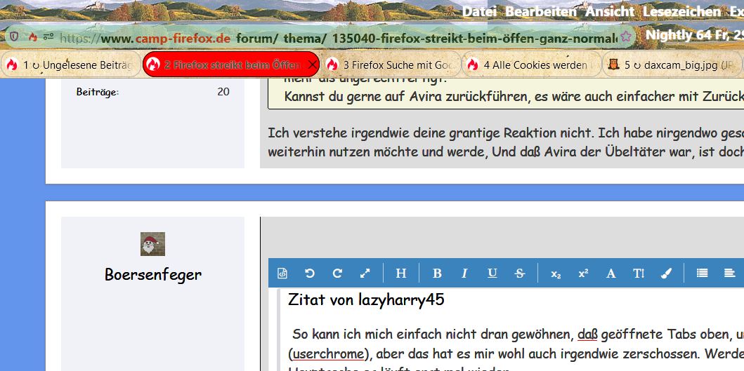 Praktisch von einem Tag auf den anderen streikt FF beim öffnen der meisten webseiten und behauptet das wäre eine unsichere Seite. Was am Tag vorher noch ging (seit Jahren1) geht plötzlich nicht mehr. Und es sind beileibe nicht irgendwelche ominösen Seiten, sondern ganz nornmale Seiten wie z.B. aida. de, oder https://meine-landausfluege.de/ und viele, viele andere. Es erscheint folgende Fehlermeldung:
