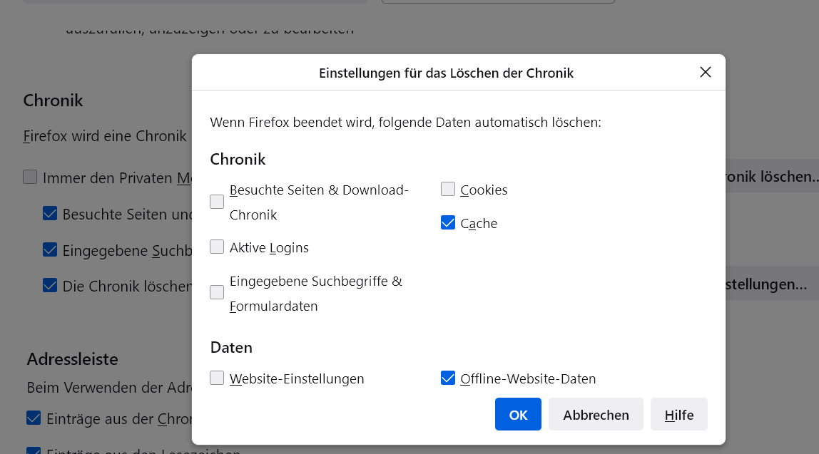 Ich habe auch die Datei "profiles.ini" gelöscht. Hat nichts genutzt. Wenn ich die Datei öffne, stehen da übrigens auch nur die neu erstellten Profile drin.