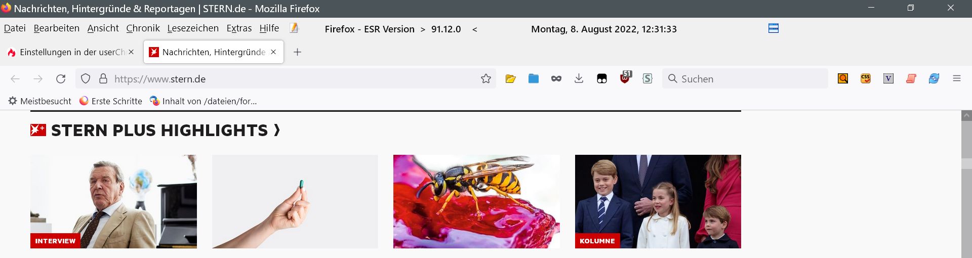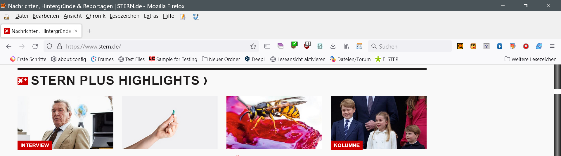 • Ich habe hier kein Problem bei stern.de. Allerdings verkleinert sich der Schieberegler offenbar, wenn man das Fenster verkleinert. Ich nutze hauptsächlich das maximierte Fenster.