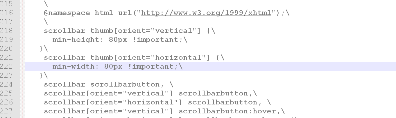 Im speziellen Fall handelt es sich um die Darstellung der horizontalen und vertikalen Scrollbar, die ich meiner schwindenden Sehkraft angepasst habe
