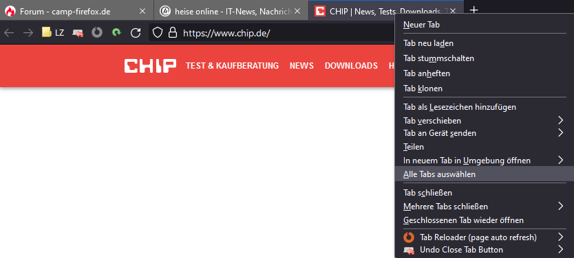 Ich möchte alle offenen Tabs im Nightly (im Smartphone) am PC als Lesezeichen speichern.