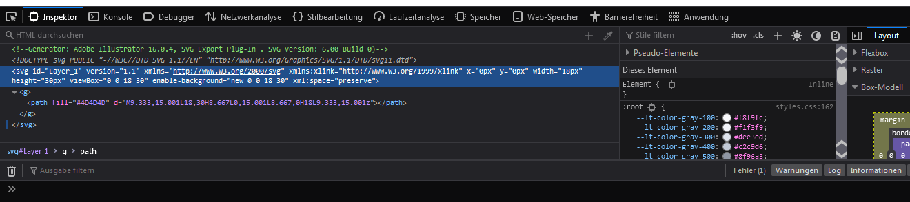 Symbole unter zu Hilfenahme der Browserwerkzeugen in der Größe ändern