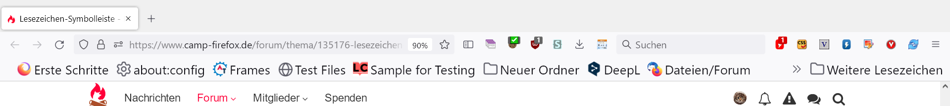 Und wie oben schon erwähnt - die Datei muss userChrome.css heissen, mit grossem C , in einem Ordner namens  chrome , im aktiven Profilordner ; und nach Änderungen Firefox beenden und neustarten .