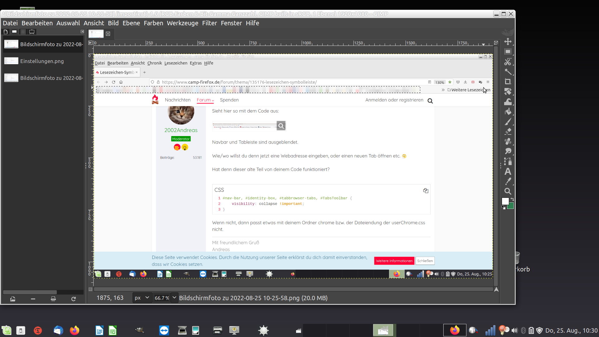 • Du hast die Nutzung von CSS Codes in about:config aktiviert?