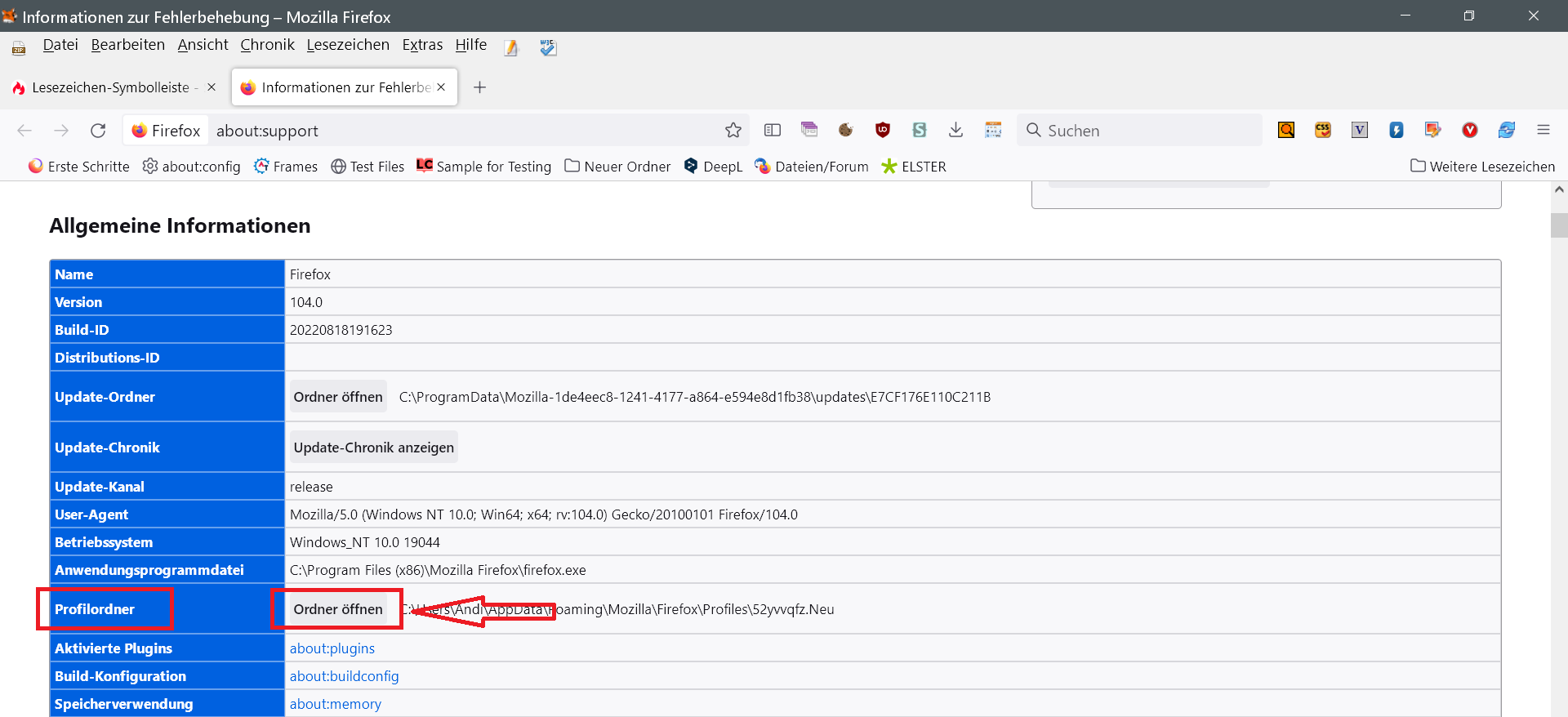 Lesezeichen-Symbolleiste