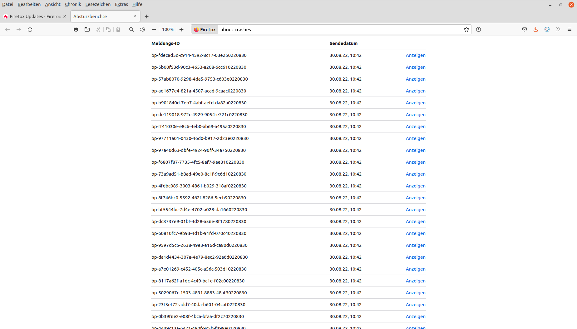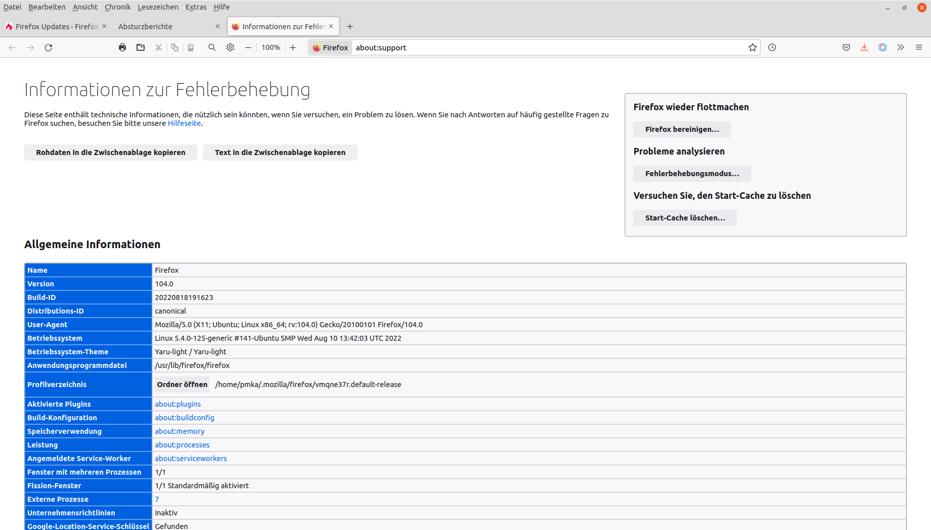 Zum Einen stürzen neu geöffnete Tabs ab und ich werde aufgefordert Firefox neu zu starten. Äußerst unangenehm bei laufender Arbeit.