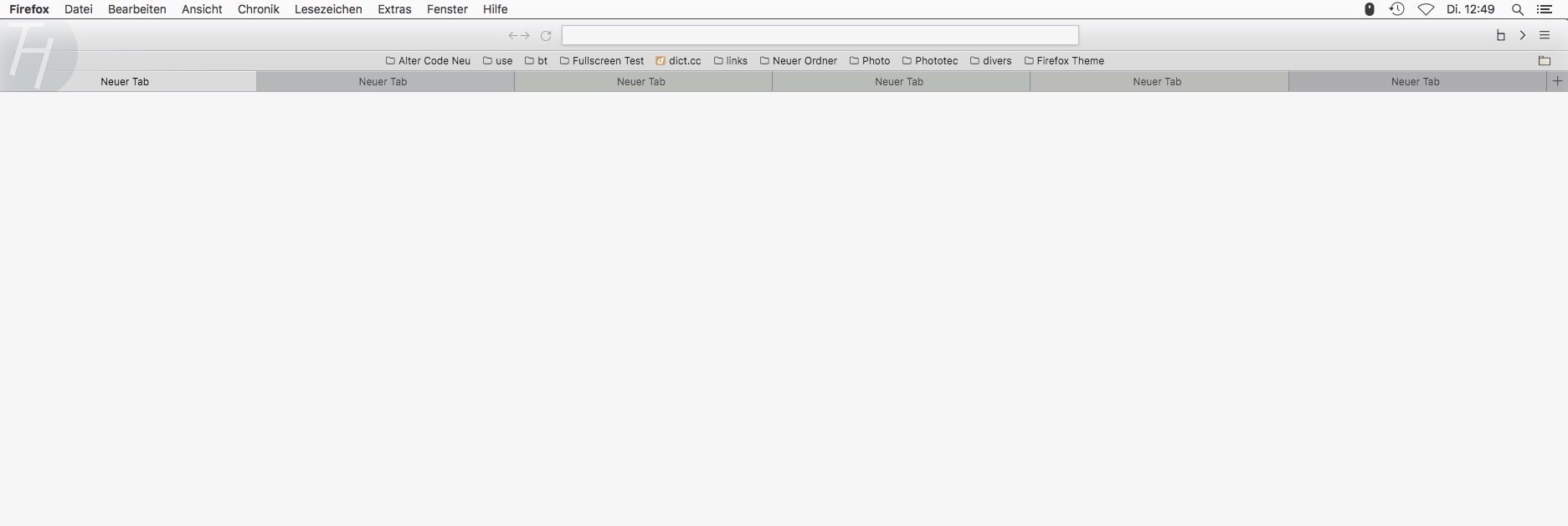 Im Screenshot unten liegt ein Verlauf über der Tableiste; mit Ausnahme des aktiven Tab haben alle Elemente diesen Hintergrund .