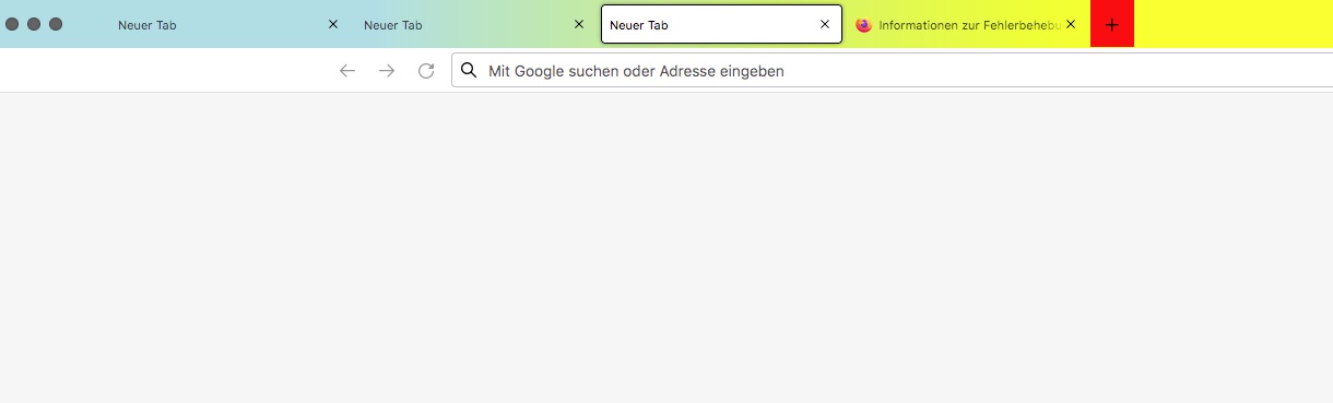 Im Screenshot unten liegt ein Verlauf über der Tableiste; mit Ausnahme des aktiven Tab haben alle Elemente diesen Hintergrund .
