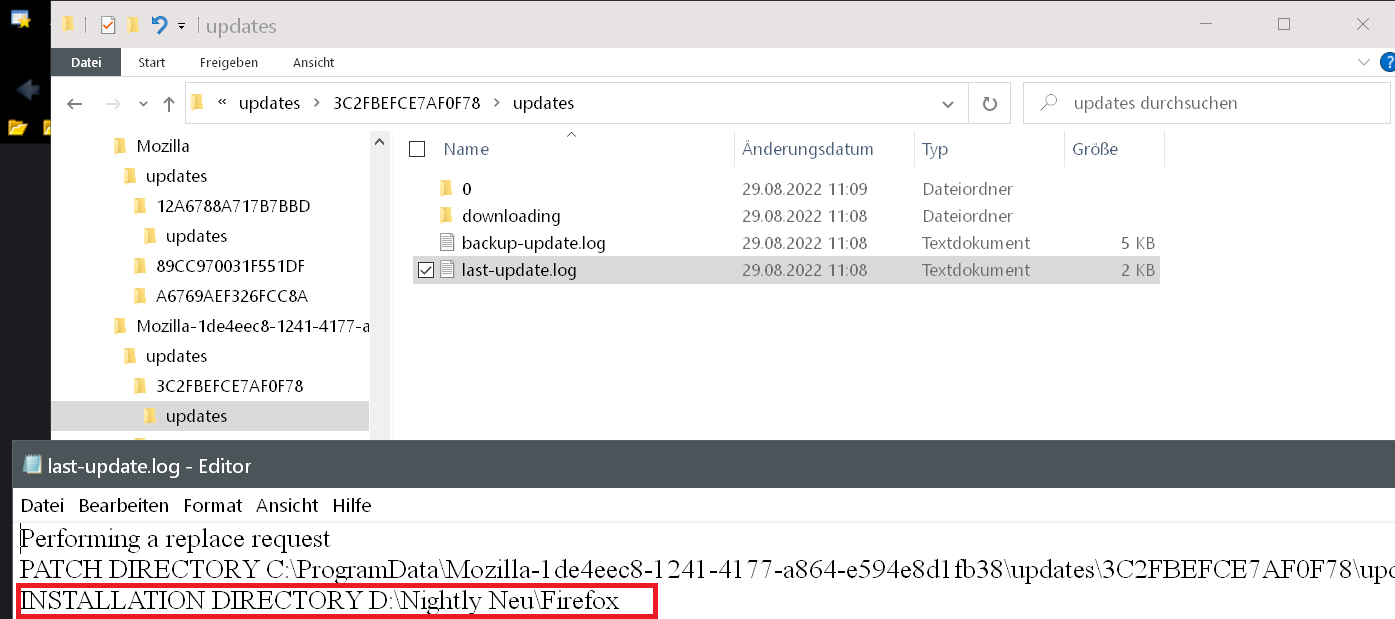 Wenn ich den Update Ordner vom Firefox auf C:// öffne, sind dort auch alle Updates der portablen Versionen enthalten.