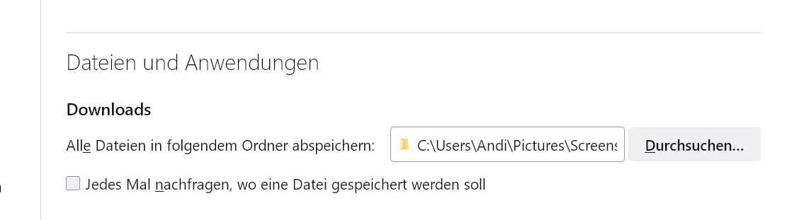 Downloads Speicherort "nachfragen" funktioniert nicht