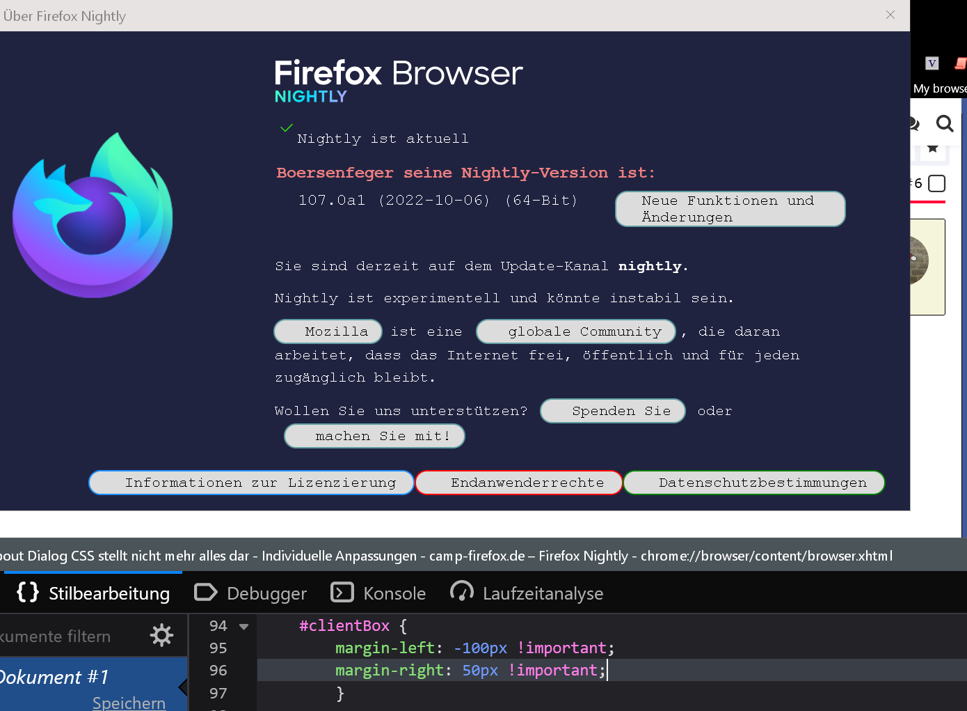 Im morgigen Nightly-Build wird es nochmal eine minimale Anpassung geben. Aber was die Absicht betrifft: Grundsätzlich passt der Dialog ja bereits wieder - so wie Mozilla ihn implementiert hat. Es sind eure Anpassungen, die einen größeren Effekt verursachen. Und darauf kann Mozilla natürlich keine Rücksicht nehmen. ;)
