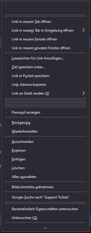 Leider hat dies ein anderes Problem verursacht. Mein Kontextmenü ist komplett Schrott. Ein Klick auf "In neuem Tab öffnen" macht auch gar nichts. Im Internet habe ich keine Beiträge zu diesem Problem gefunden. Vielleicht weiß hier ja jemand eine Lösung.