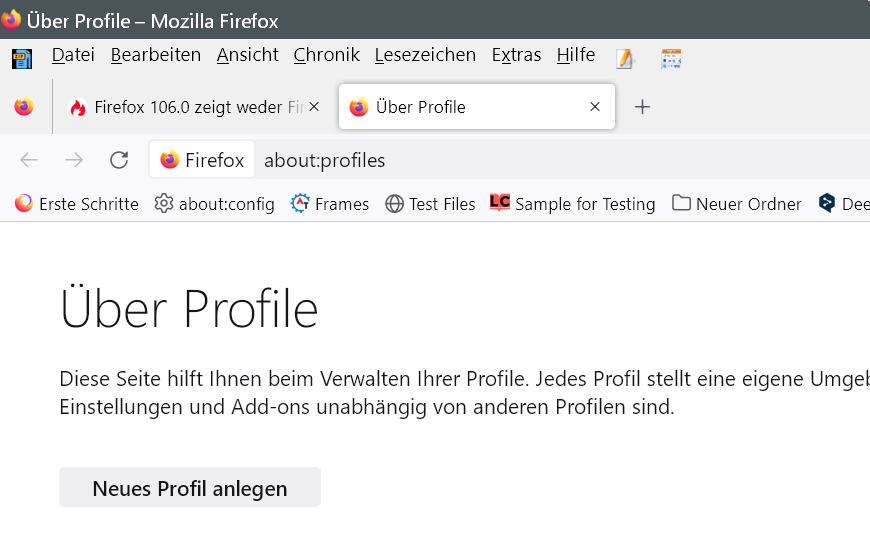 Für mich sieht das so aus, als wäre der Browser immer noch bei der 105.0.3, obwohl unter Hilfe -> Über Firefox 106.0 steht. Sehr seltsam für mich!
