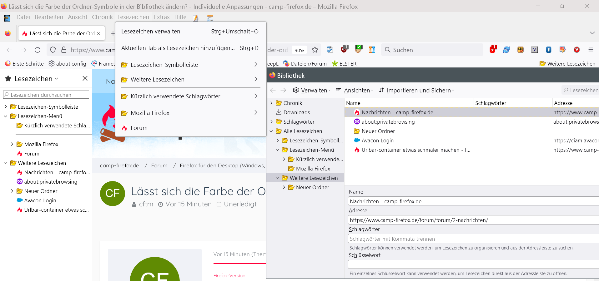 und es haben sich nur die Icons (Ordner) im Lesezeichenmenü geändert.